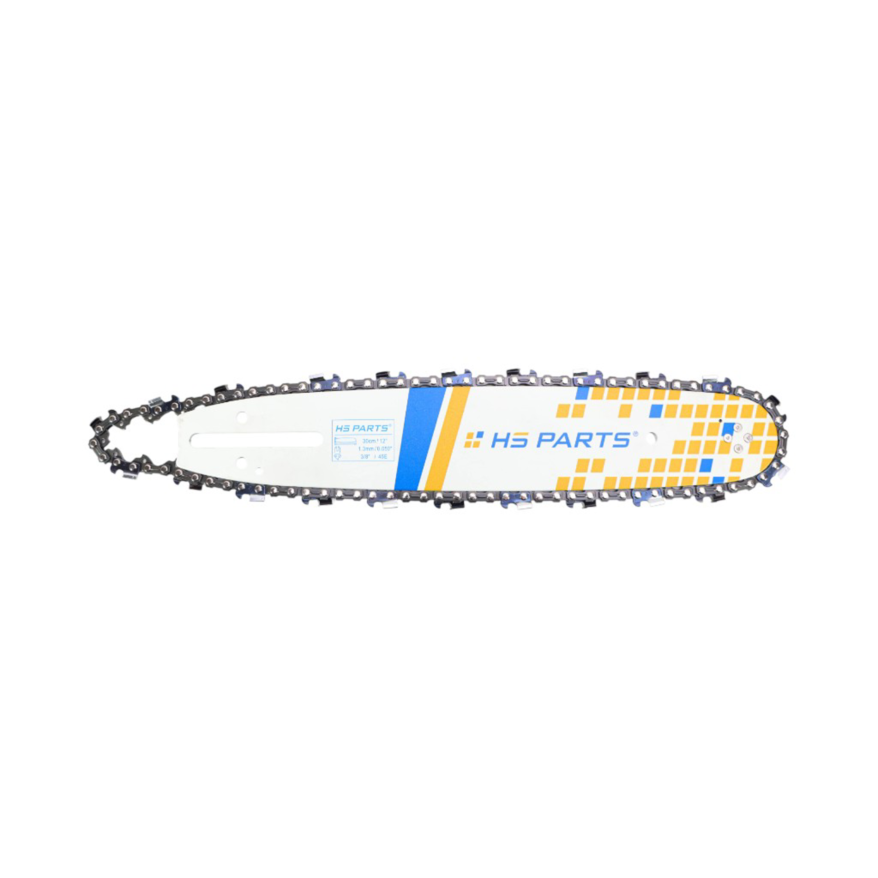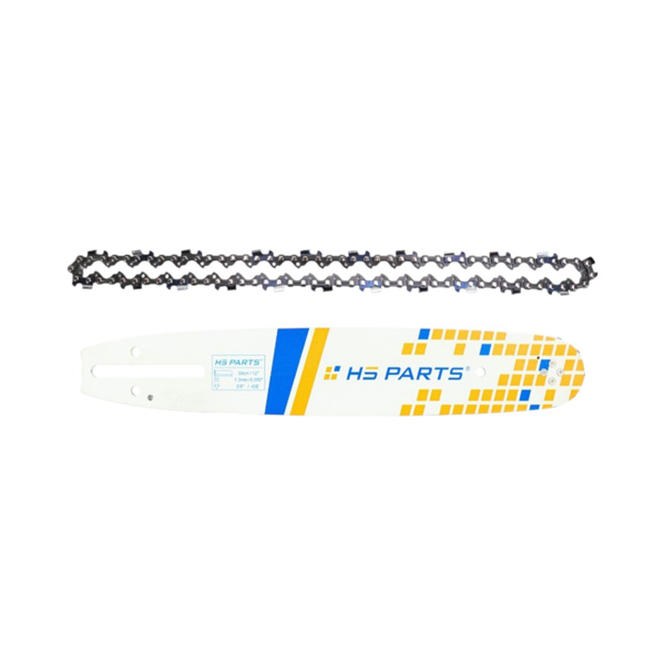 Popis a špecifikácia produktu: HS PARTS vodiaca lišta 12" (30 cm) 3/8" .050" (1,3 mm) + pílová reťaz 45 článkov hranatý zub pre Partner 350 351 370 P420 Husqvarna T425 E316 E321 Dolmar PS330 PS33 PS34 Homelite 3300 CS40 Solo 613 Oleomac GS35 GS350