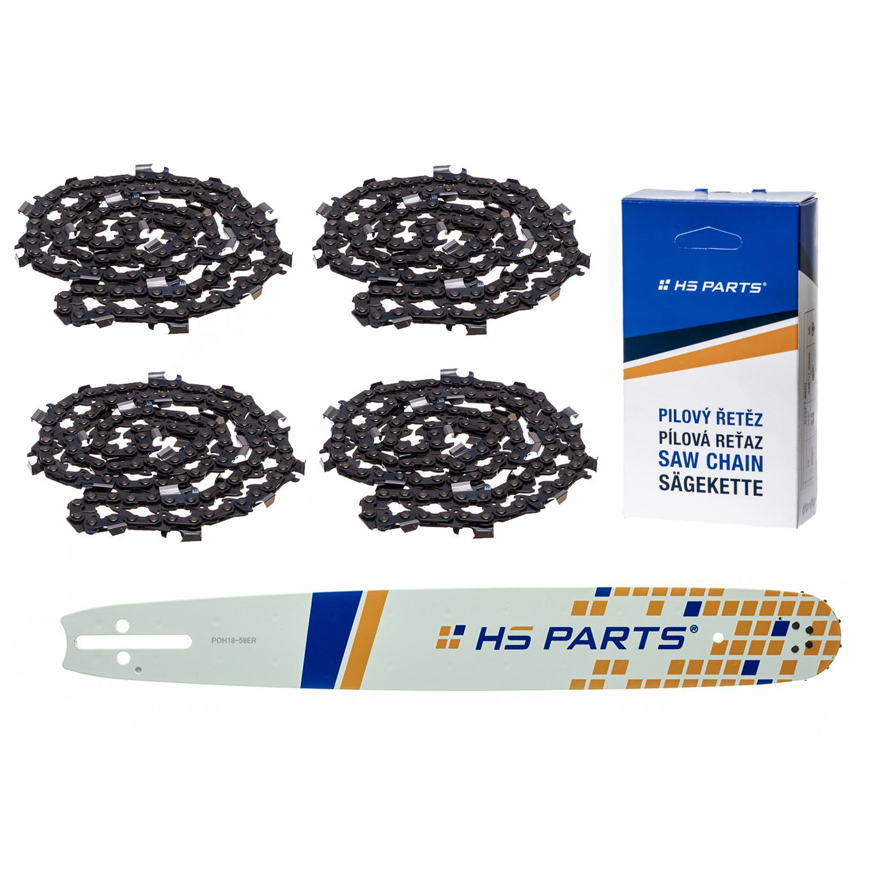 HS PARTS využíva na výrobu reťazí komponenty z Nemecka a Švajčiarska, ktoré sú odolné proti korózii a vyznačujú sa dlhou životnosťou..