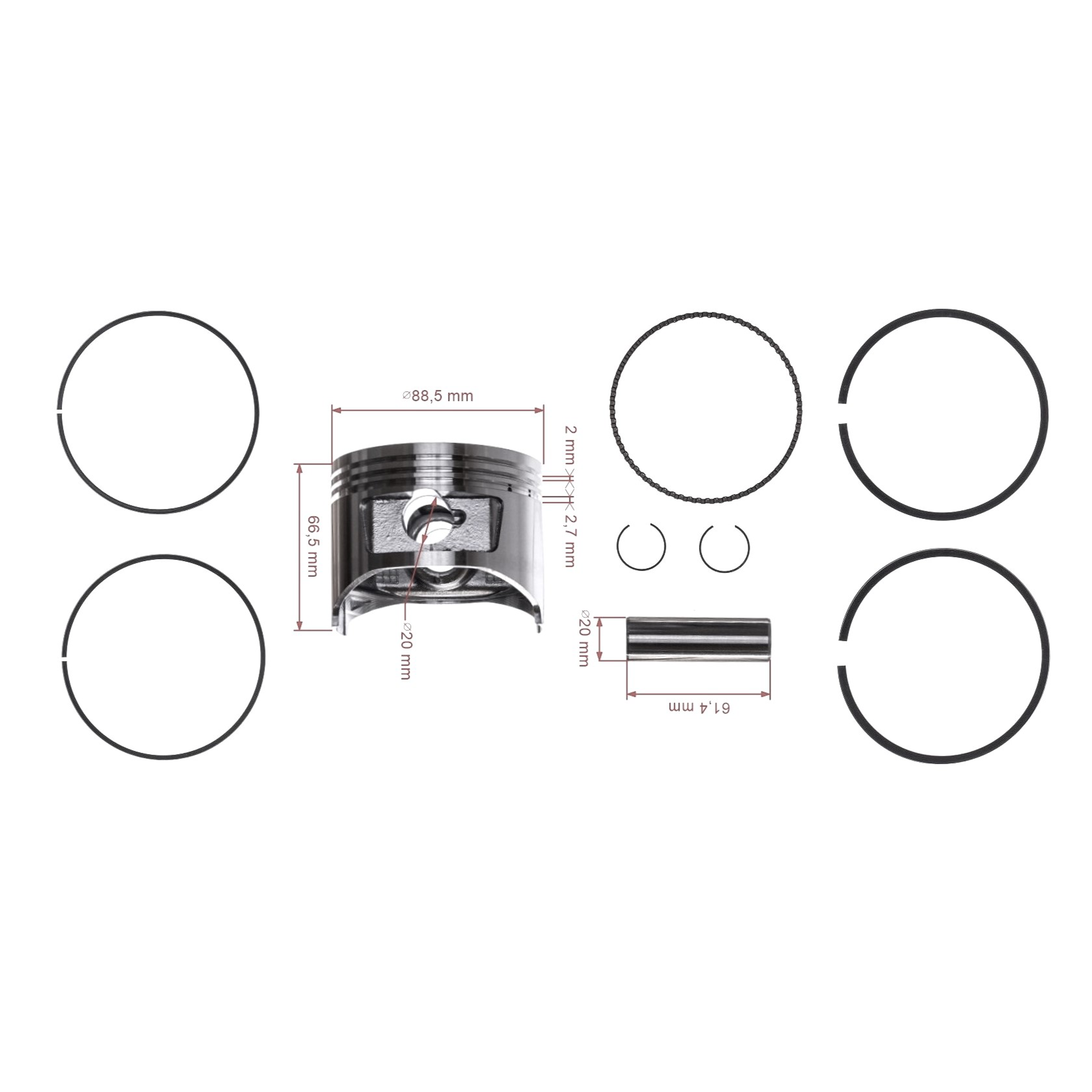 Popis a špecifikácia produktu: Kompletný piest pre Honda GX390 88,5 mm 2. výbrus +0,50 mm (OEM 13103-ZF6-W00)