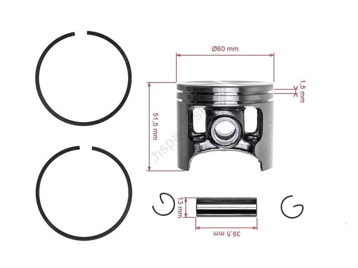 Popis a špecifikácia produktu: Kompletný piest pre Husqvarna Partner K1250 K1260 3120 3122 60 mm (OEM 501894103)