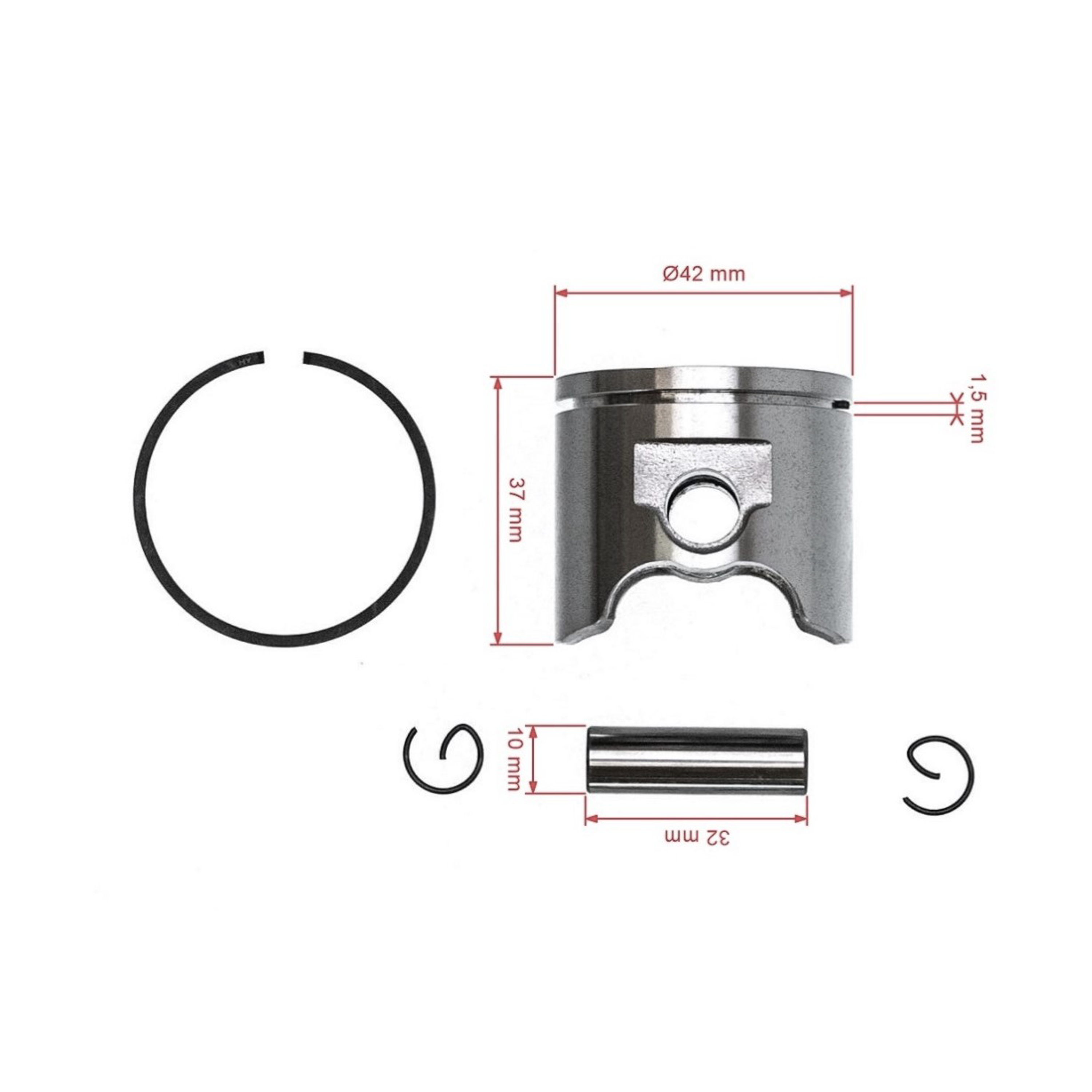 Popis a špecifikácia produktu: Kompletný piest pre motorové píly a krovinorezy Husqvarna 343F 343R 345R 345 Jonsered BC2145 FC2145 2141 CS2141 42 mm (OEM 503907371)