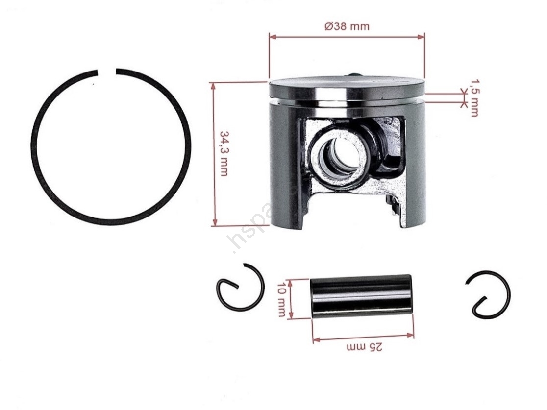 Popis a špecifikácia produktu: Kompletný piest pre motorové píly Husqvarna 335 335XPT 38 mm (OEM 503792402 503792401)