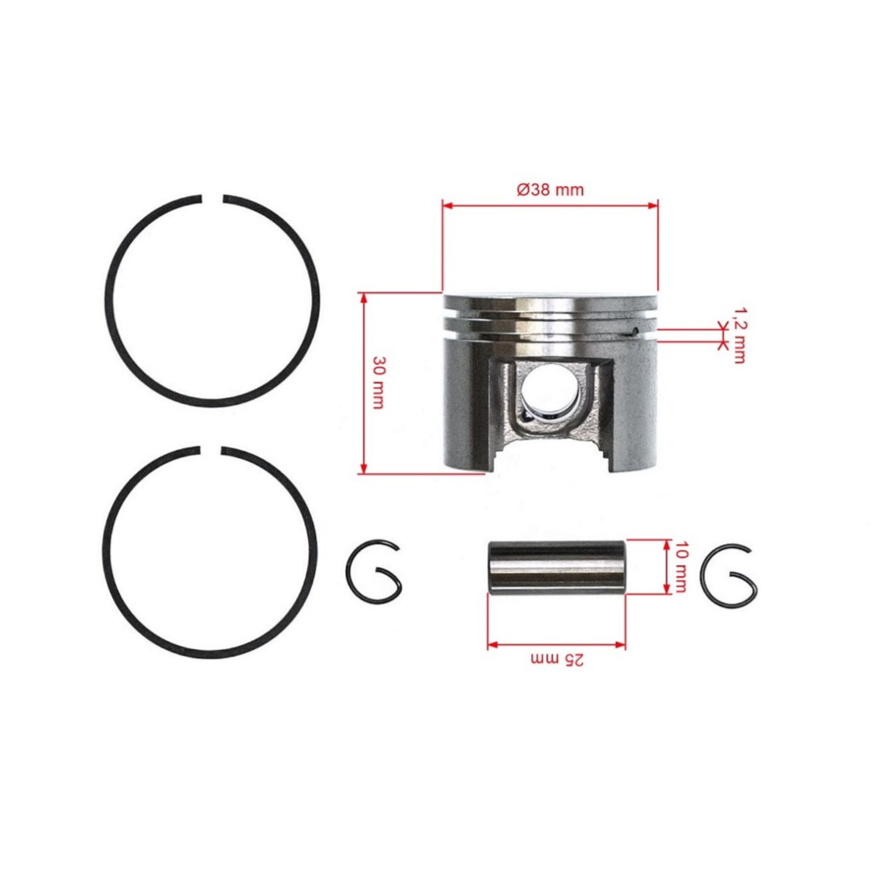 Popis a špecifikácia produktu: Kompletný piest pre motorové píly Stihl MS180 018 38 mm (OEM 11300302004)