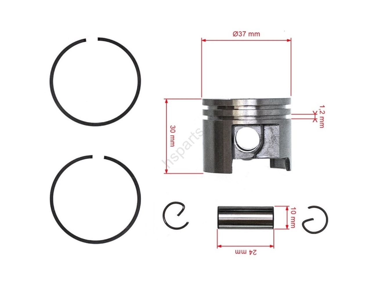 Popis a špecifikácia produktu: Kompletný piest pre motorové píly Stihl MS191 MS192 37 mm (OEM 1370302002)