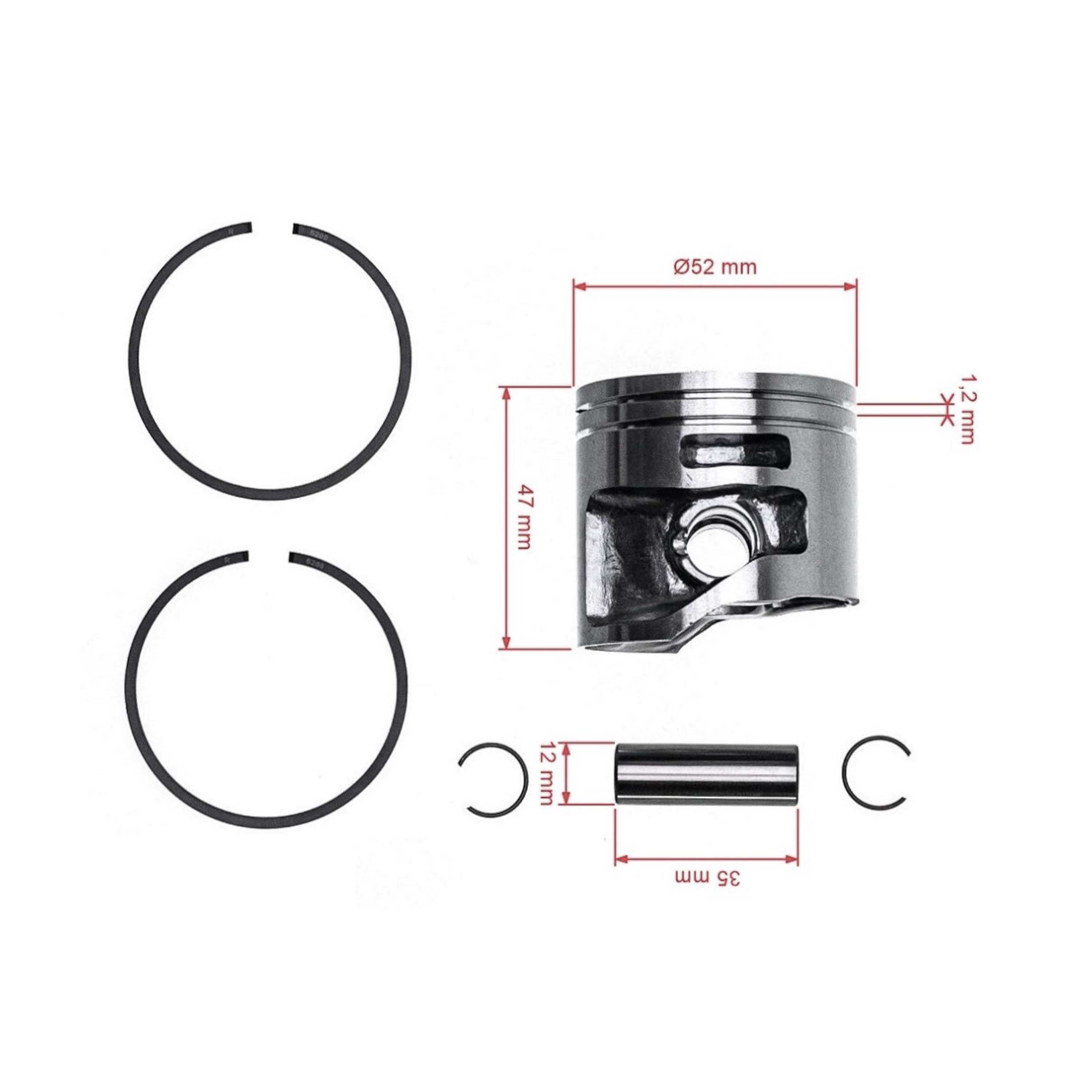 Popis a špecifikácia produktu: Kompletný piest pre motorové píly Stihl MS441 52 mm (OEM 11380302003)