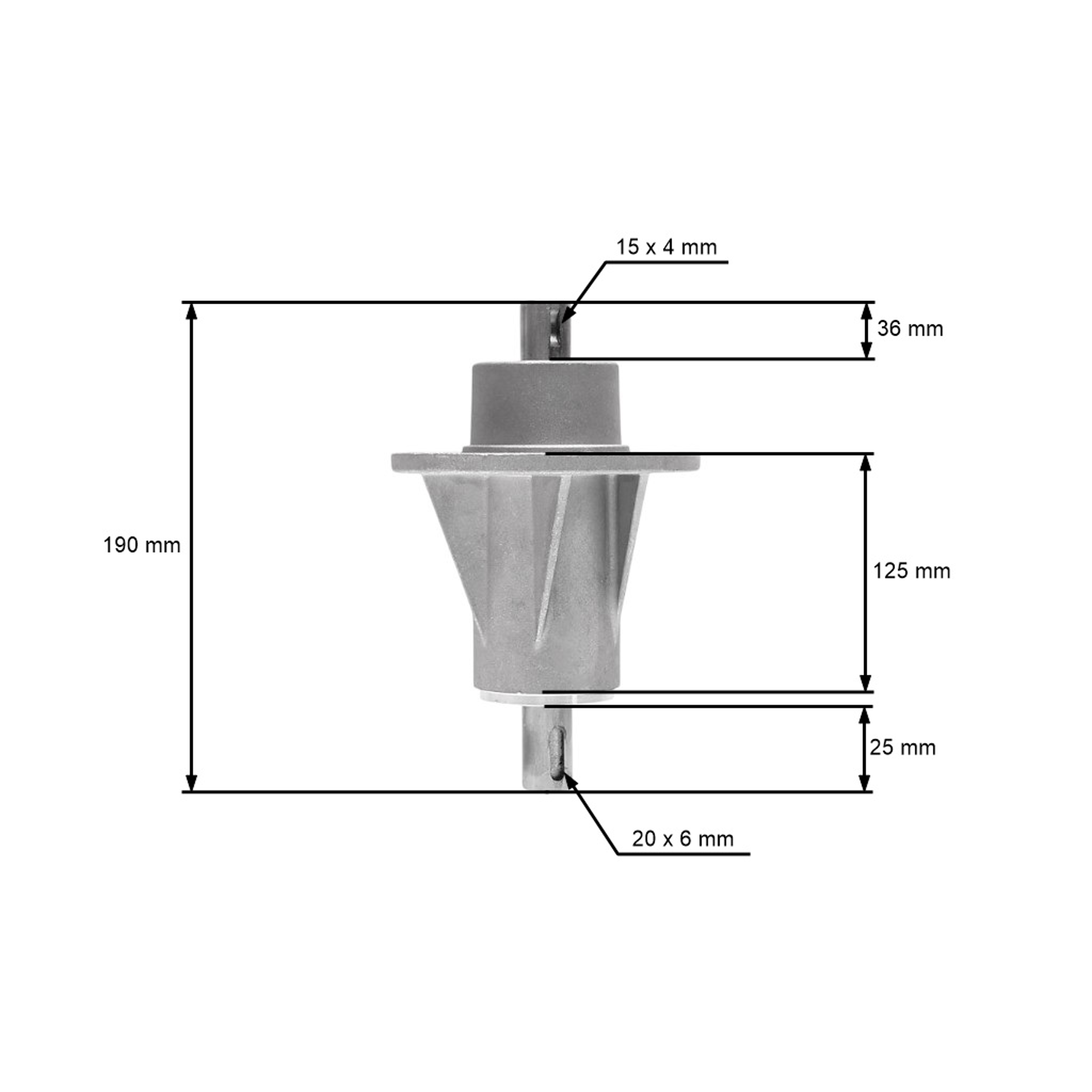 Popis a špecifikácia produktu: Mandrela žacieho noža pre záhradné traktory Castel Garden Honda Oleomac Karsit Solo Stiga Viking (OEM 82207201/0 6151 700 3505 CG82207-201-H2 1136-0480-01)