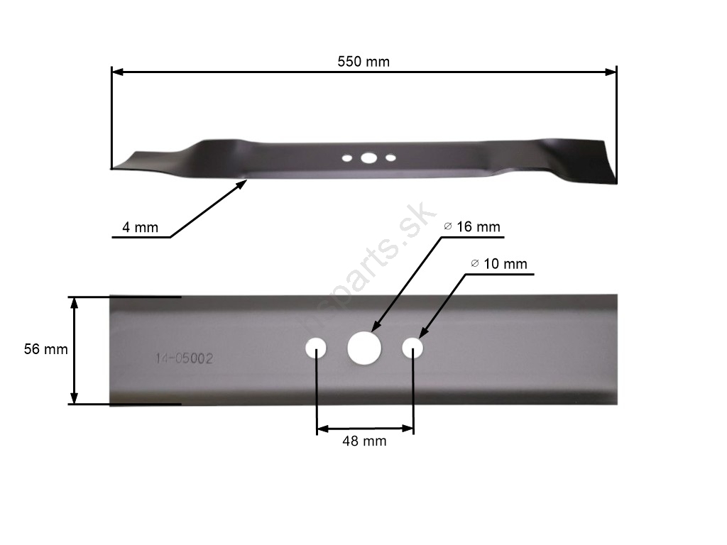 Popis a špecifikácia produktu: Mulčovací nôž 55 cm (22") pre kosačky Husqvarna Partner McCulloch Poulan (OEM 532141114 532157101)