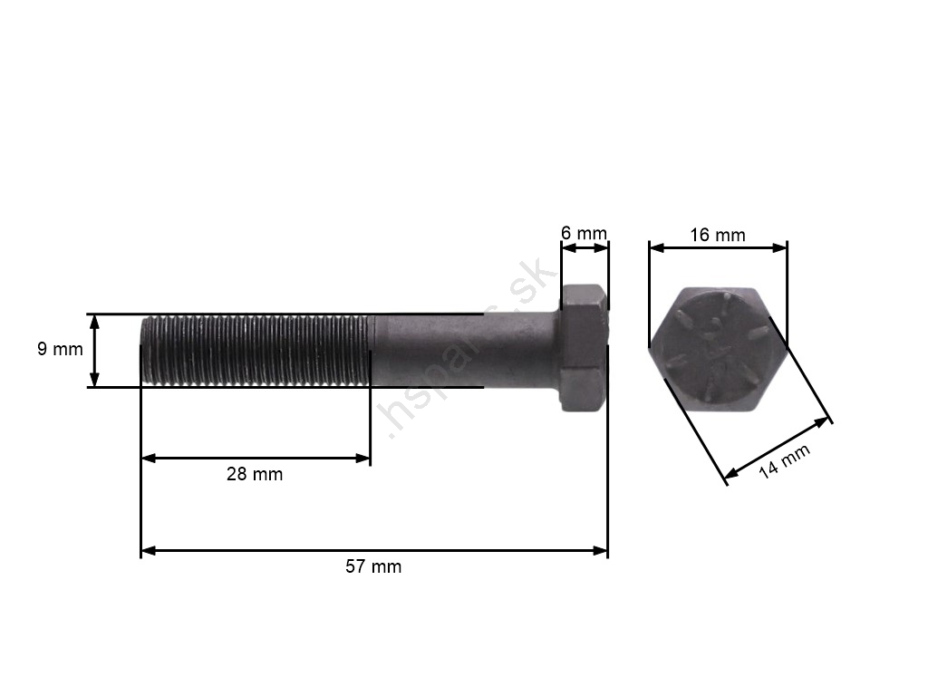 Popis produktu a špecifikácie: Skrutka žacieho noža jemný závit UNF 3/8" x 2" pre kosačky na trávu a záhradné traktory celková dĺžka 57 mm priemer 9,40 mm