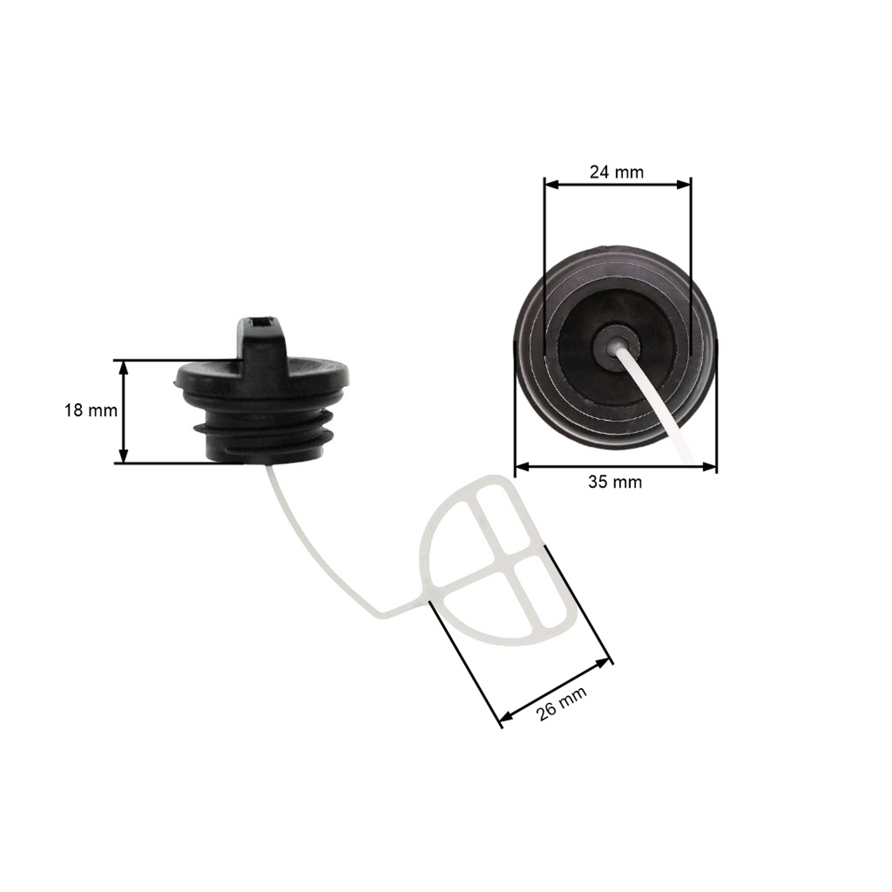 Popis a špecifikácia produktu: Viečko palivovej nádrže pre čínske píly a z hobbymarketov s objemom motora 38 cm3 45 cm3 52 cm3 58 cm3