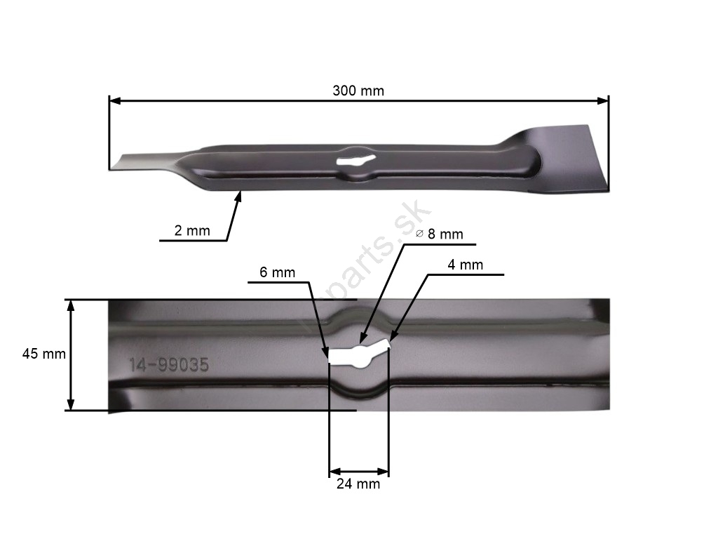 Popis a špecifikácia produktu: Žací nôž 30 cm (12") pre elektrické kosačky GO-ON Einhell Centralpark Basic Grizzly Castorama (OEM 3405600 340024001021 GD21BX.00.02)