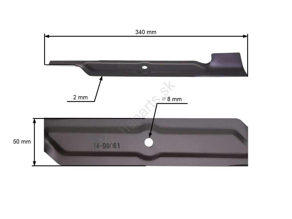 Popis a špecifikácia produktu: Žací nôž 34 cm (13") pre elektrické kosačky Hecht MTD Krysiak Lider